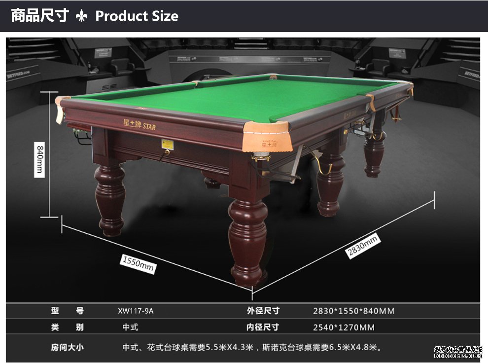 XW117-9A星牌鋼庫(kù)臺(tái)球桌